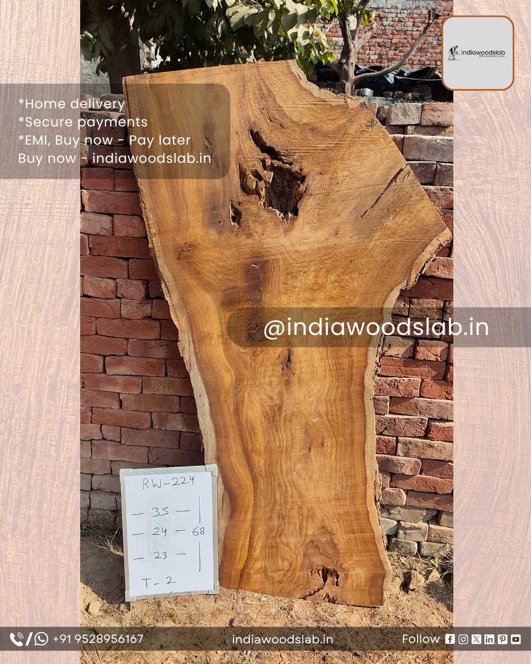 Live edge wood slabs in India. @indiawoodslab +91 9528956167
